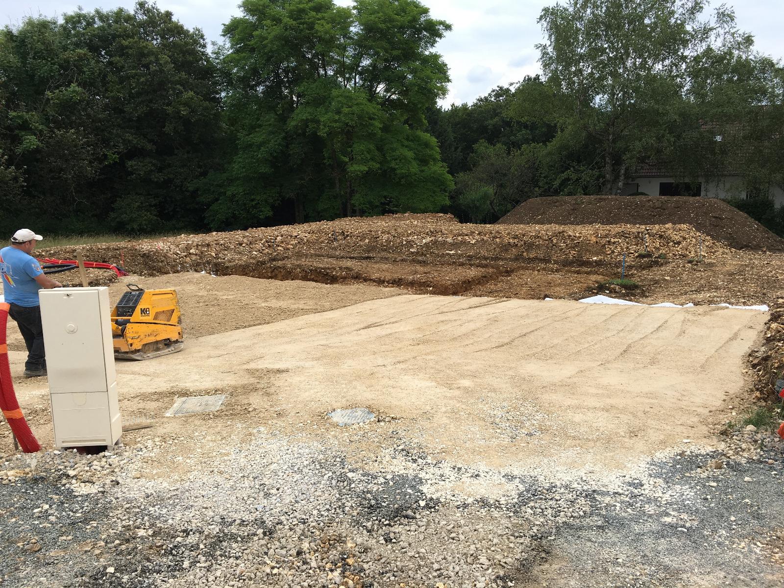 Nous effectuons le nivellement du terrain et la création de fossés si besoin et aménageons ensuite le terrain en question : dessouchage, empierrement, enrochement